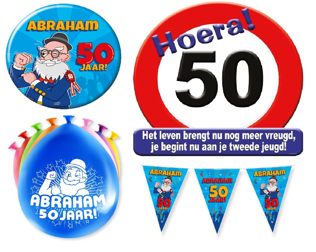 Deze grote window signs Abraham 50 jaar zijn met 60 x 45 centimeter de perfecte decoratie aan deuren en ramen en er is direct te zien waar het feestje is.