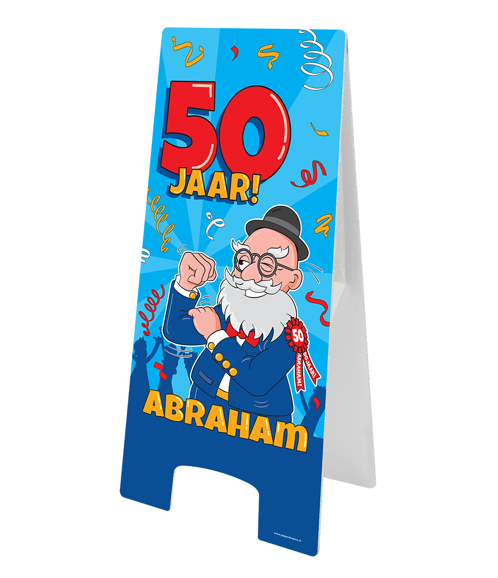 Deze warning sign met Abraham (cartoon) is gemaakt van stevig karton en heeft een afmeting van 58×24 centimeter.